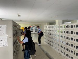 久しぶりの生徒玄関。戸惑う新入生も・・。