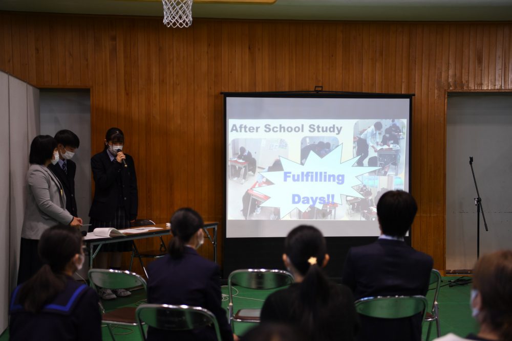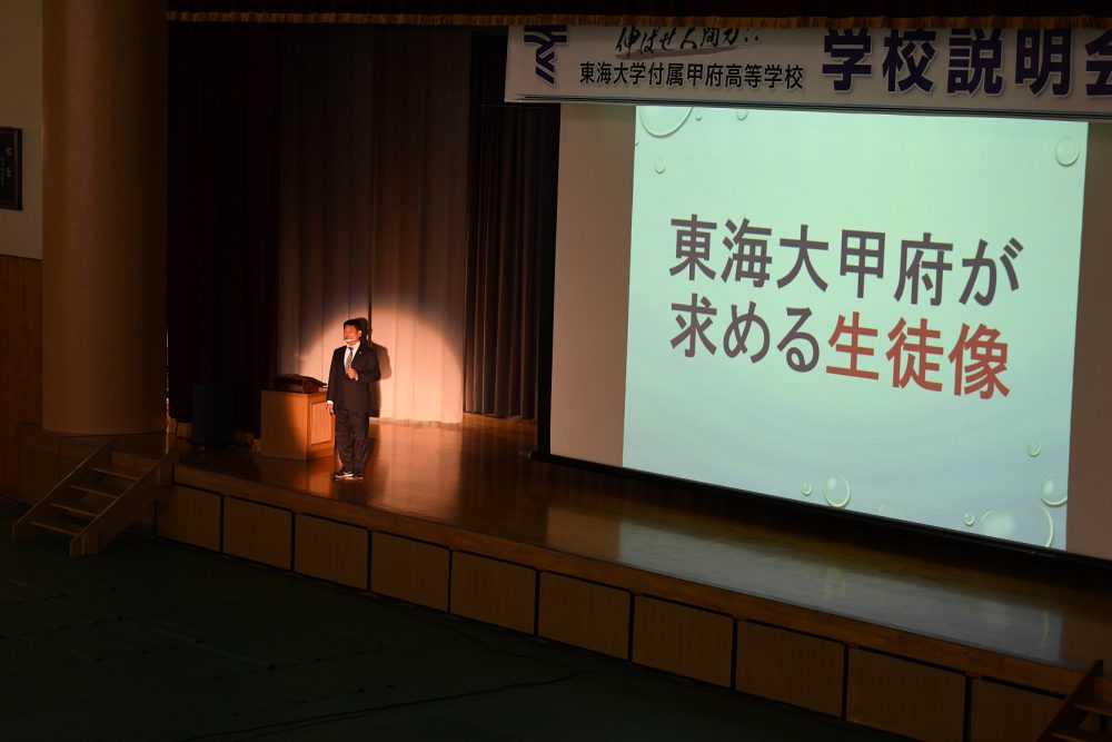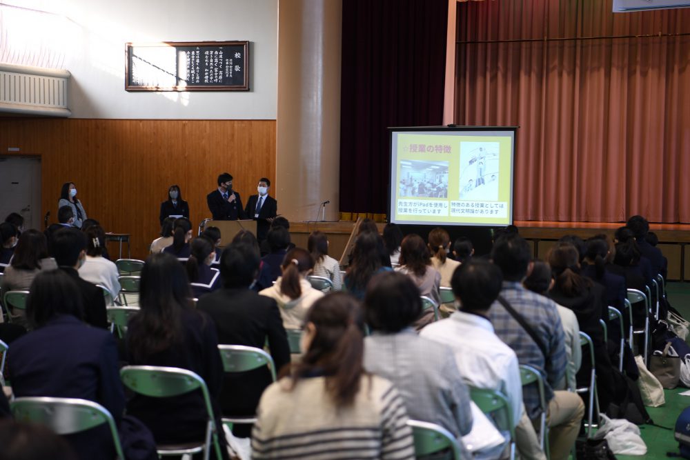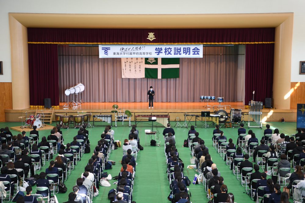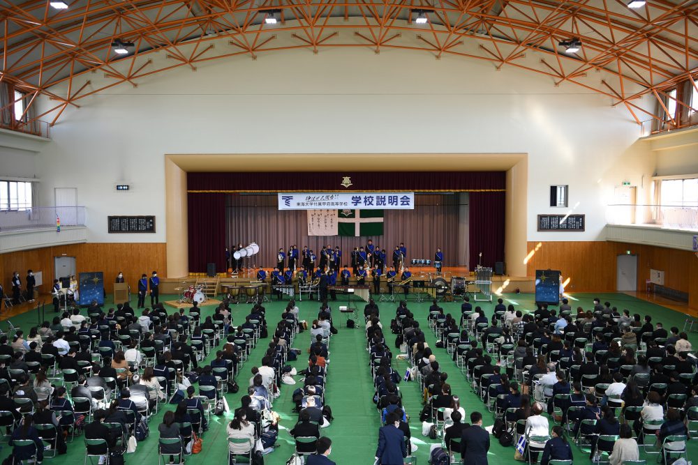 例年とは全く異なる形でしたが、説明会の初めには吹奏楽部とチアダンス部がウェルカムコンサートを行い、また生徒会長が歓迎のあいさつをするなど、生徒が前面に立って、これまで以上に本校の魅力をお伝えすることができたのではないかと思います。