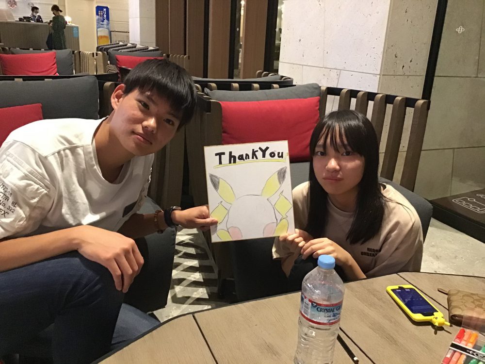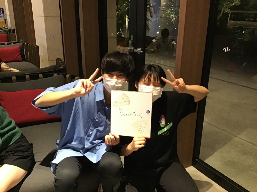 ホームビジット1日目が無事に終わりました。ホストファミリーと一緒にホテルに戻ってきた時、みんな笑顔に満ち溢れていました! 生徒のホームビジット中に、教員の訪問を受けていただけたファミリーが本日は1件ありました。時間指定がランチタイム時だったので、生徒はファミリーと一緒に作ったTacosとPizzaをおいしそうに食べていました!ホストファミリーのご好意で、訪問した我々教員も少々ごちそうになりました! 夕食を終えてからは、明日のFarewell ceremonyで、各々がファミリーに手渡すThank you Cardと、グループごとに渡す式紙作成に励んでおります。明日はFarewell ceremony後に、全員で振り返りの時間を持ちます。2日間どんな風にファミリーと過ごしたのか、英語でシェアする予定です。 英語で話すことを実践から学んだ経験を糧に、自信を持って英語で情報交換ができることを期待します。