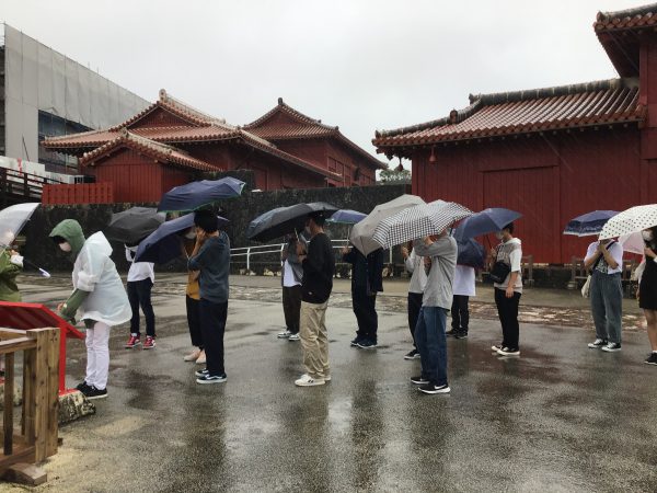 天気は昨日に引き続き、大雨と強風です。 首里城へ見学に行きましたが、全体写真は悪天候のため撮れませんでした。
