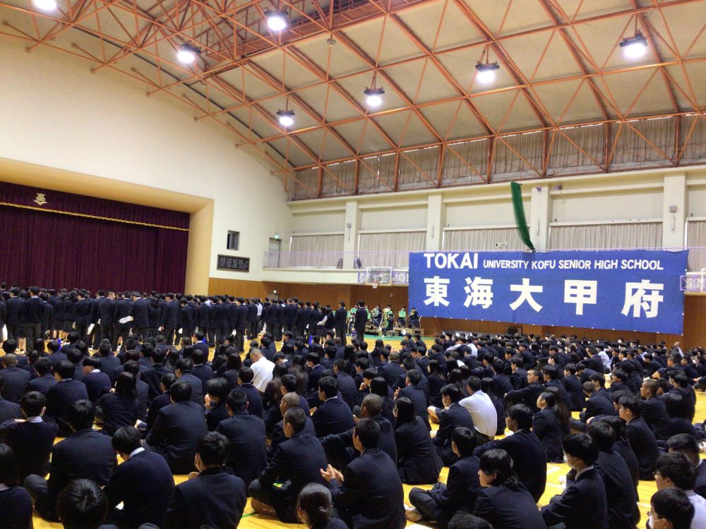 4/15(月) 全校生徒が体育館に集まり、新入生歓迎会を行いました。